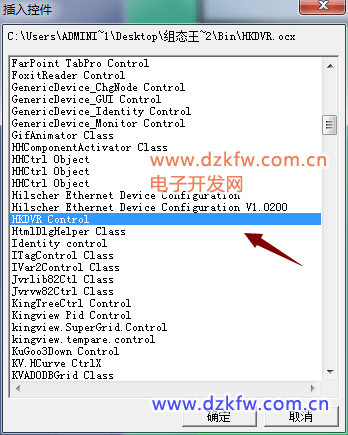打開(kāi)控件選擇界面,找到HKDVR Contrl,如下圖所示: