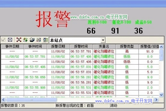 報(bào)警窗口是用來(lái)顯示系統(tǒng)中發(fā)生的報(bào)警和事件信息,分為實(shí)時(shí)報(bào)警窗口和歷史報(bào)警窗口;