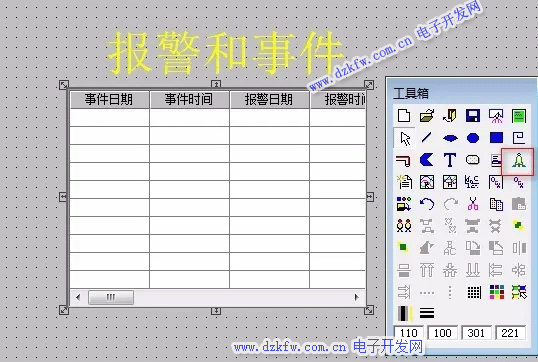 選擇工具箱中的報(bào)警窗口工具,繪制報(bào)警窗口;