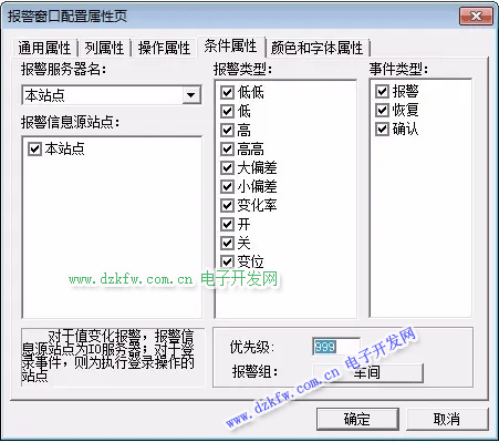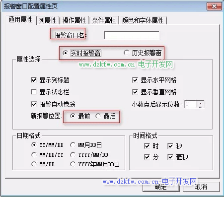 雙擊報(bào)警窗口,彈出屬性對(duì)話框;