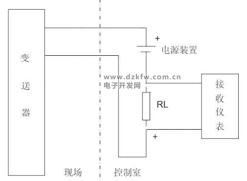 兩線制變送器接線示意圖。兩線制變送器如圖一所示,其供電為24V.DC,輸出信號為4-20mA.DC,負載電阻為250Ω,24V電源的負線電位最低,它就是信號公共線。