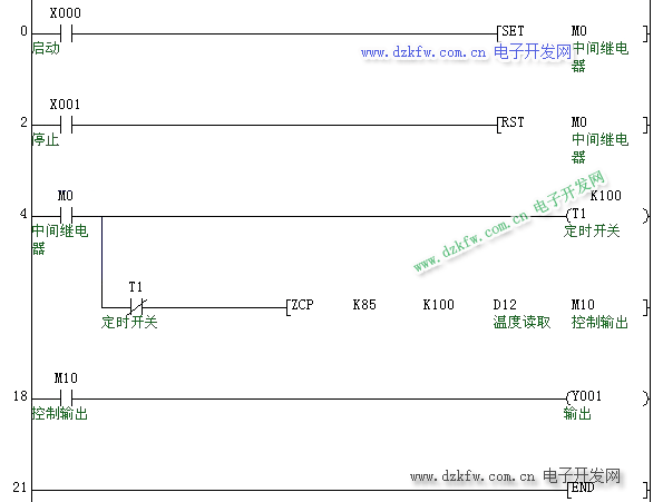 三菱PLC只用溫控開關實現加熱,自動恒溫,定時停止的梯形圖