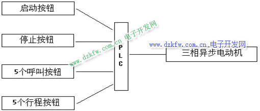 這個控制系統(tǒng)的輸入有啟動按鈕開關(guān)、停止按鈕開關(guān)、5個呼叫按鈕開關(guān)、5個行程開關(guān)共12輸入點。具體的輸入分配如表4-2 所示: