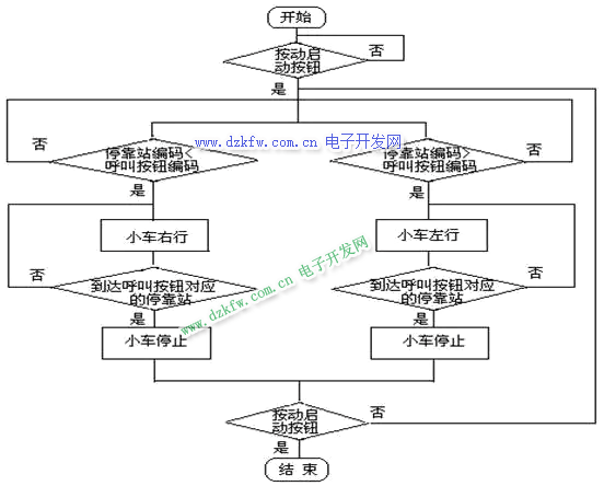 (3)、當(dāng)小車當(dāng)前所處停靠站的編碼大于呼叫按鈕HJ的編碼時,小車向左行,運行到呼叫按鈕HJ所對應(yīng)的停靠站時停止;