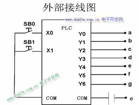 用PLC控制七段數(shù)碼管循環(huán)顯示數(shù)字0~9,顯示間隔1s。