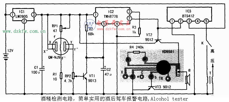 關鍵字:酒精測試電路,QM-NJ9,TWH8778,BTS412