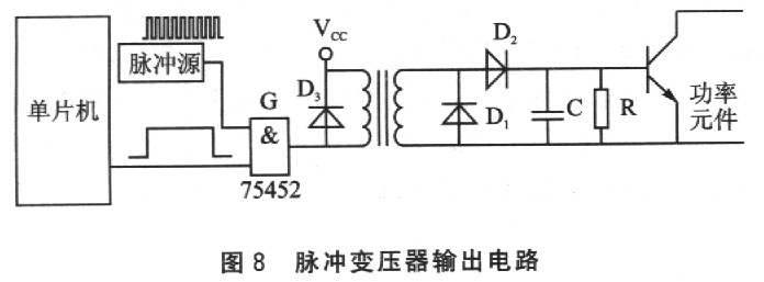 當(dāng)單片機(jī)輸出較高頻率的脈沖信號時,可以不采用脈沖源和G門,對變壓器原副邊電路作適當(dāng)調(diào)整即可。