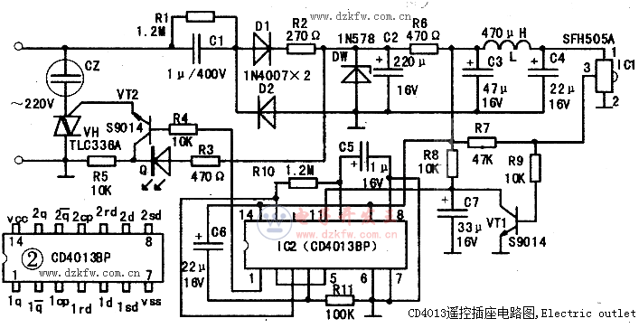CD4013遙控插座電路,Electric outlet