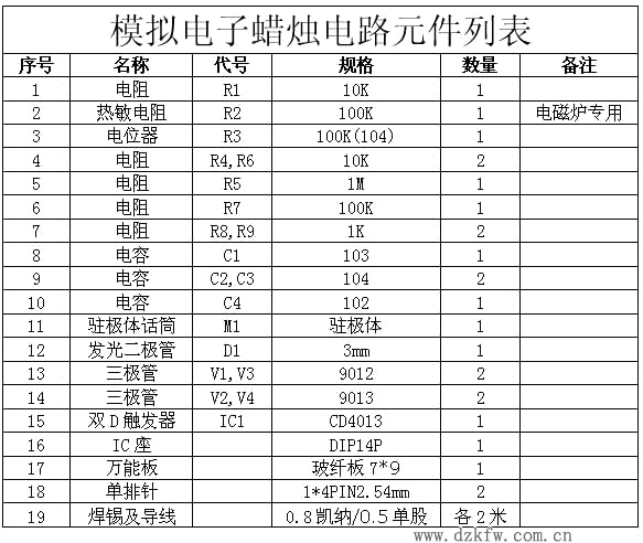 當用打火機燒熱敏電阻R2后(燒的時間不能太長,否則容易燒壞熱敏電阻),R2的阻值突然變小,呈現低電阻狀態,三極管V1導通,產生的高電平脈沖送到4013的1SD端,使1Q端翻轉變為高電平,送到三極管V4的基極,也為高電平,V4導通,發光二極管D1發光,這一過程相當于用火柴點亮蠟燭,此時即使打火機離開熱敏電阻R2后,也不會使電路狀態發生改變,發光二極管D1維持發光。