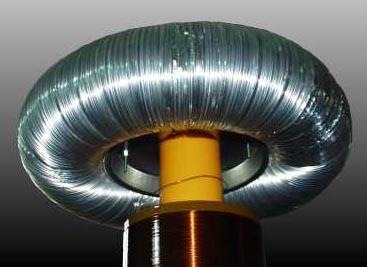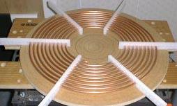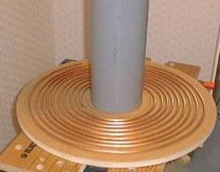 在本特斯拉線圈的設計中主線圈采用銅管繞制成蚊香狀.銅管是用于汽車,供熱,中央空調中的那種管壁較厚的承壓銅管.直徑8毫米大約繞制9-10匝 (大約需要9米)
