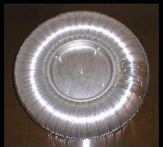 首先將平底金屬盤底對底用螺絲固定如上圖,接著將鋁管盤成圈狀,使其正好能卡在平底金屬盤制作的骨架上,鋁管的接口口處用鋁箔封口,接線點定位在平底金屬盤骨架中心,組裝好成品,至此特斯拉線圈的所有重要部分已經完成。