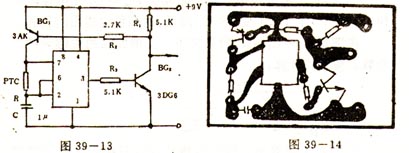 線性溫度一頻率變換電路的印刷電路如圖39-14所示。