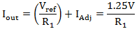 式中Vref為標(biāo)稱參考電壓,為1.25V;IAdj為調(diào)節(jié)端電流;R1為編程電阻。