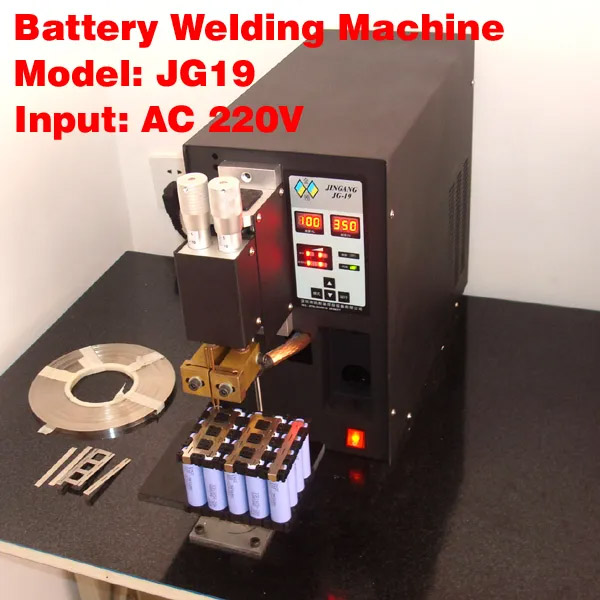 18650電池或其他電池組,包括特斯拉汽車(chē)的電池組,其工業(yè)化焊接過(guò)程中一般要用到點(diǎn)焊機(jī)(Spot Welder)。點(diǎn)焊機(jī),顧名思義,就是在某個(gè)點(diǎn)或局部地區(qū)進(jìn)行電氣焊接。點(diǎn)焊機(jī)原理眾多,比如電弧點(diǎn)焊或電阻點(diǎn)焊。當(dāng)然,網(wǎng)上有很多產(chǎn)品,價(jià)格從幾百元到幾千元不等。點(diǎn)焊機(jī)樣子如下圖: