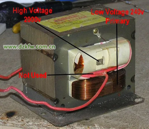 首先,我家里有一個(gè)壞了的微波爐。拆開(kāi),把上面的變壓器拆下來(lái):