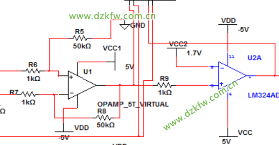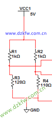 R3代表的就是箔電阻(箔電阻的阻值會隨溫度的升而變大,具體變化見附錄一),120歐是當溫度為50攝氏度時的電阻值,當溫度超過50度時箔電阻的電阻值就會大于120歐,由于R3,R4的阻值不同而產生壓差。 2.3.2 放大比較