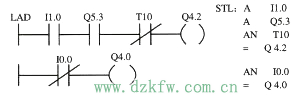 如圖所示,觸點串聯指令也用于串聯邏輯行的開始。CPU對邏輯行開始第1條語句如Il.0的掃描稱為首次掃描。首次掃描的結果(I1.0的狀態)被直接保存在RLO(邏輯操作結果位)中;在下一條語句,掃描觸點Q5.3的狀態,并將這次掃描的結果和RLO中保存的上一次結果相“與”產生的結果,再存入RLO中,如此依次進行。在邏輯串結束處的RLO可作進一步處理。如賦值給Q4.2 (=Q4.2)。