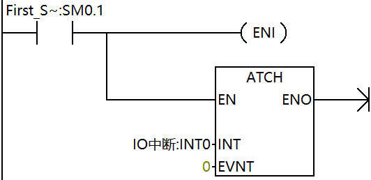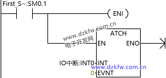 第一步:開中斷,中斷事件關聯為0,I0.0上升沿觸發中斷服務程序INT0