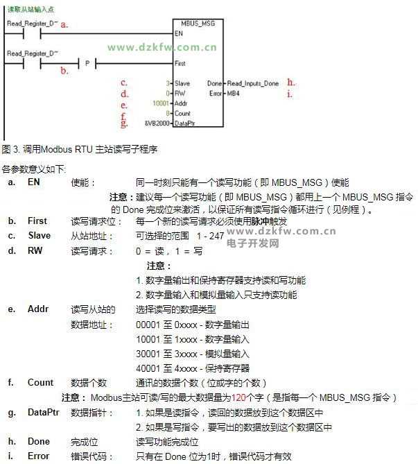 3、主站讀寫(xiě)子程序MBUS_MSG,引腳說(shuō)明