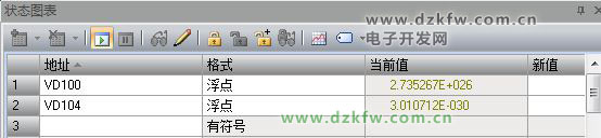 根據(jù)上圖,實(shí)際溫度值為VW100/10=17°,實(shí)際濕度值VW102/10=35%