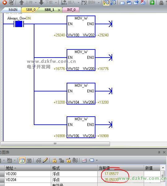 原來(lái)VD100=VW100+VW102,但是對(duì)方因?yàn)槭欠俏鏖T(mén)子產(chǎn)品,高地位要換位,即VD100=VW102+VW100。程序見(jiàn)下圖: