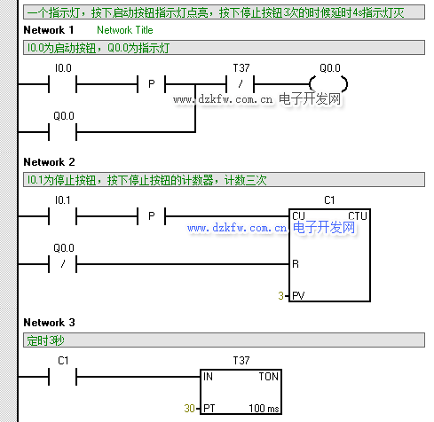 西門子plc S7-200按下啟動按鈕指示燈點亮,按鈕使用計數器和計時器的例子