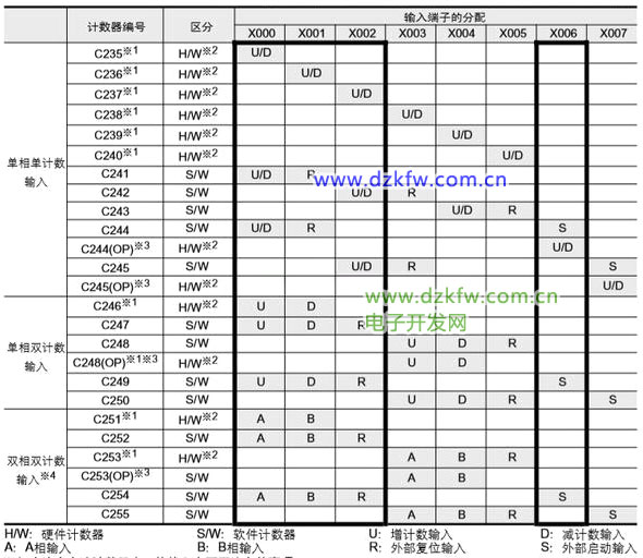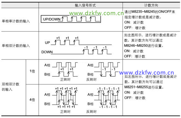 基本單元內置了32位增減計數器的高速計數器(單相計數/單相雙計數/雙相雙計數),根據計數方法的不同可以分為硬件計數器和軟件計數器兩種