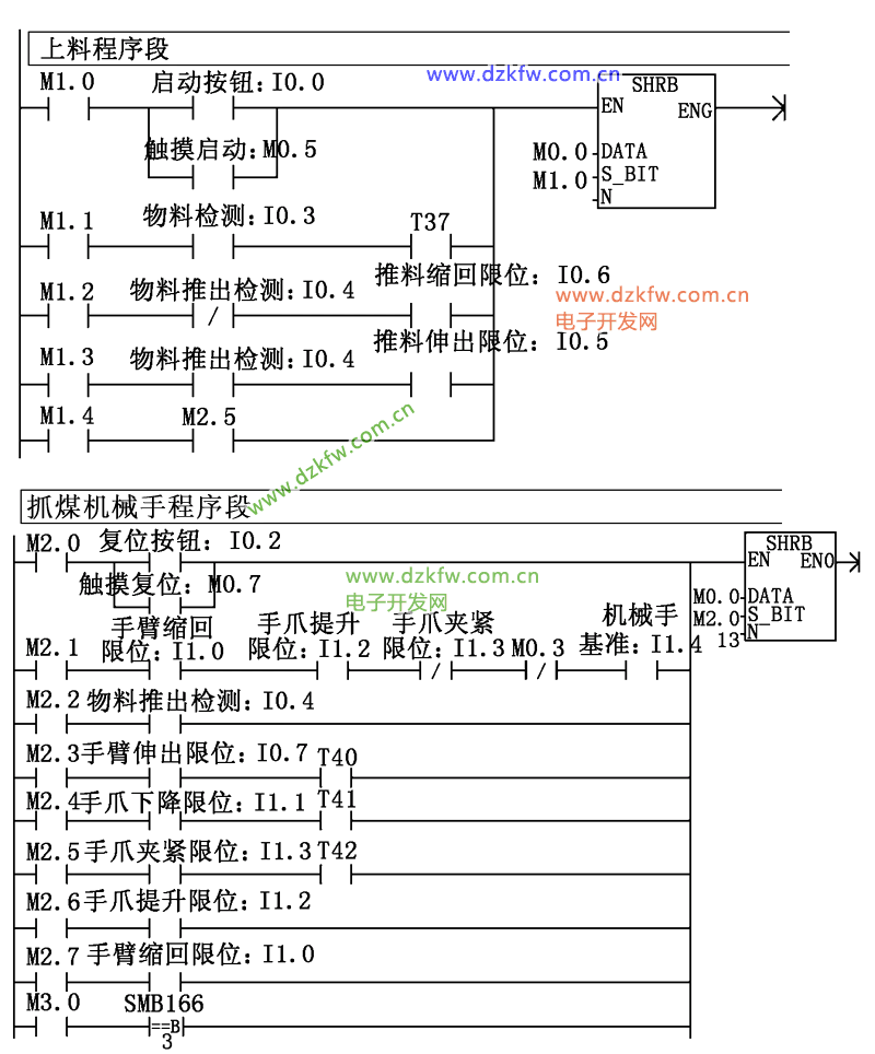 圖4 上煤檢測程序段 圖5 抓煤機械手程序段