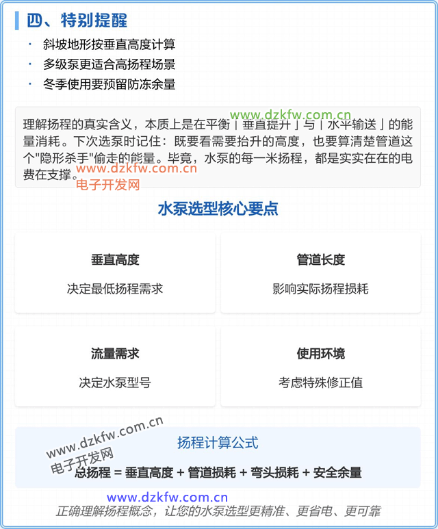 選泵需平衡垂直提升與管道能耗,每米揚程都對應電費成本。核心要訣:算凈高,管損耗,留余量。