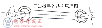 開口扳手是最常見的一種扳手,又稱呆扳手。其開口的中心平面和本體中心平面成15°角,這樣既能夠適應(yīng)人手的操作方向,又可以降低對操作空間的要求。其規(guī)格是以兩端開口的寬度S (mm)來表示的,如8~10mm、12~14mm 等;一般是成套裝備,有八件一套、十件一套等;用45號(hào)、50號(hào)鋼鍛造,并經(jīng)熱處理。