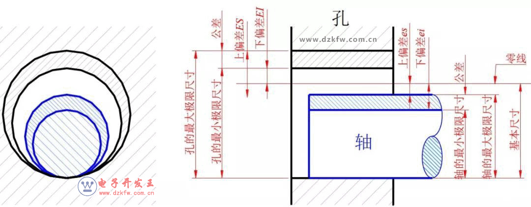 國家標準規定:孔的上偏差代號為ES,孔的下偏差代號為EI;軸的上偏差代號為es,軸的下偏差代號為ei.