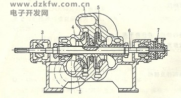 1泵盞,2泵體,3軸承體;4-軸套;5一葉輪;6泵軸;7一軸頭油泵