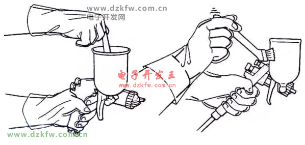 5)重復步驟(2)、(3)、(4)直至噴出的稀釋劑中不含有任何涂料。然后用毛刷清潔噴槍外部。
