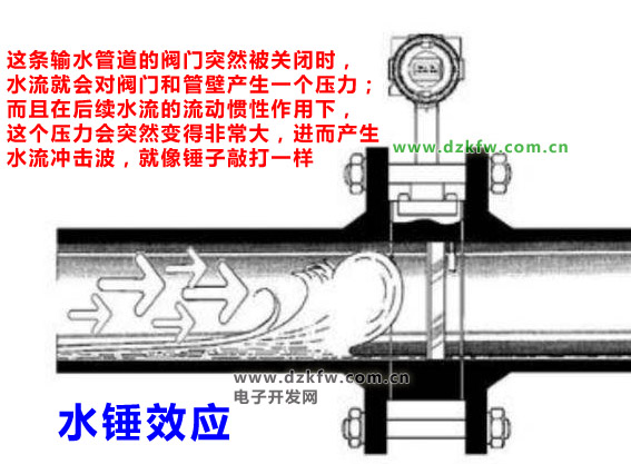 我們都知道,為了輸水方便、更高效,無論是塑料管道還是金屬管道,管道內壁一般都是比較光滑的,水流在里面流動就會更加快速。但當這條輸水管道的閥門突然被關閉時,水流就會對閥門和管壁產生一個壓力;而且在后續水流的流動慣性作用下,這個壓力會突然變得非常大,進而產生水流沖擊波,就像錘子敲打一樣,從而對管道產生損傷破壞。