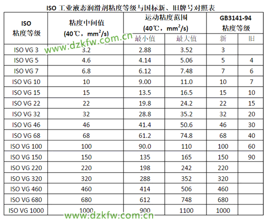 工業(yè)液壓油潤(rùn)滑劑粘度等級(jí)與國(guó)標(biāo)新舊等級(jí)對(duì)照表