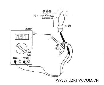 ③測量電流時,表筆應串聯在被測電路中,且紅表筆應靠近電源正極一邊,否則LCD顯示時出現 "-"(交流電流表筆不分正負)。