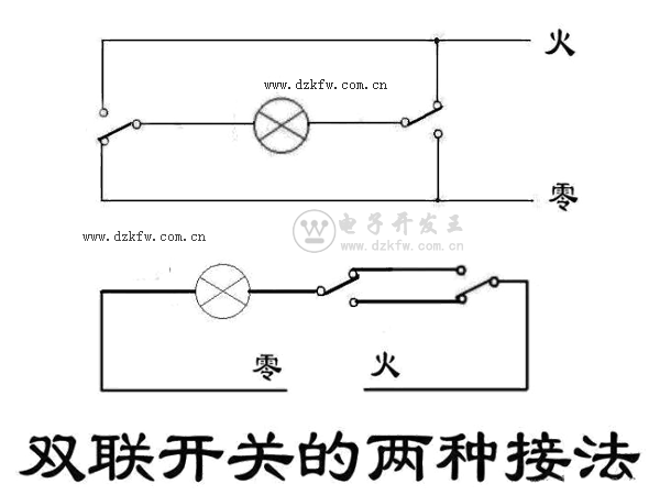 第三種方法:雙聯(lián)開關(guān)電路另類接線法(兩個(gè)開關(guān)都入火線,安全)