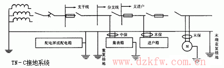 TN-C系統接線如圖1所示,具體接地情況如下: