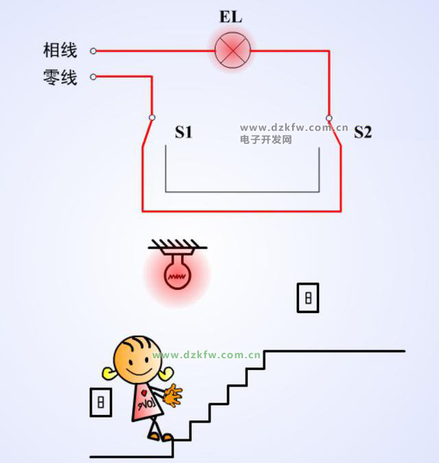 兩個開關控制著一盞燈接線圖