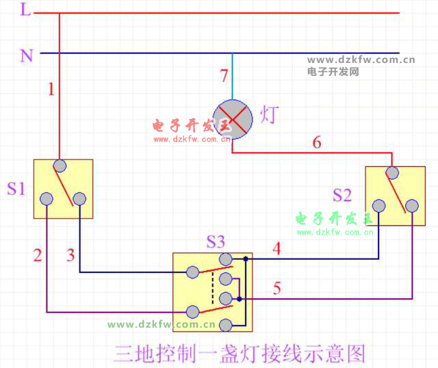 三個地方控制一盞燈接線圖