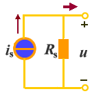 考慮實際電流源有損耗,其電路模型用理想電流源和電阻的并聯組合表示,這個電阻稱為電流源的內阻。 |