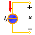 表示電流(正電荷)由高電位向低電位移動,電場力作功,電源吸收功率,充當負載。理想電流源兩端的電壓可以有不同的極性,它可以向外電路提供電能,亦可以從外電路接受電能。5)實際電流源