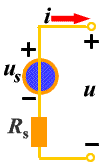 | 考慮實際電壓源有損耗,其電路模型用理想電壓源和電阻的串聯組合表示,這個電阻稱為電壓源的內阻。 |