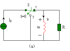 時(shí)刻,電路換路之前開關(guān) S 處于位置 1 ,直流電流源 Is 對(duì)電感 L 充電,電路已處于穩(wěn)定狀態(tài),換路前的等效電路如圖 5.3-3 ( b )所示。