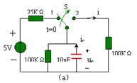 圖 5.3-1 ( a )電路, t=0 時(shí)開關(guān) S 由位置 1 撥到位置 2 ,討論換路后