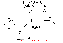 如:在圖1電路中,電阻、電容以及電壓源全部為已知參數,開關S在t=0時刻從位置1合到位置2,開關移動之前電路處于穩態,換路后的