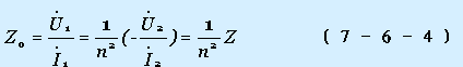 (6) 阻抗變換具有可逆性,即也可將原邊的阻抗Z變換到副邊,如圖7-6-4所示。但要注意此時副邊的等效阻抗為Z0=n2Z。