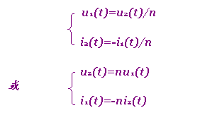 式(7-6-1),(7-6-2)即為理想變壓器的時域伏安方程。可看出: