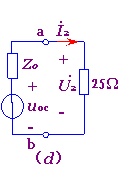 其等效電壓源電路如圖 (d)所示。于是根據圖(d)得;