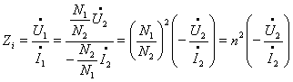 理想變壓器在正弦穩態電路中,還表現出有變換阻抗的特性,如圖1所示理想變壓器,次級接負載阻抗ZL,由設出的電壓、電流參考方向及同名端位置,可得理想變壓器在正弦電路里相量形式為